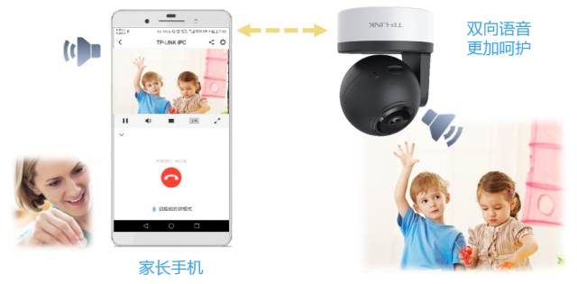 家长上班忙碌间隙,打开手机可以随时查看孩子在幼儿园的实时生活情况,听到孩子活泼快乐的声音。TP-LINK带音频摄像机可以采集到5~10米范围内的清晰声音并提供高清画质监控。园方亦可实时展示自身服务品质。