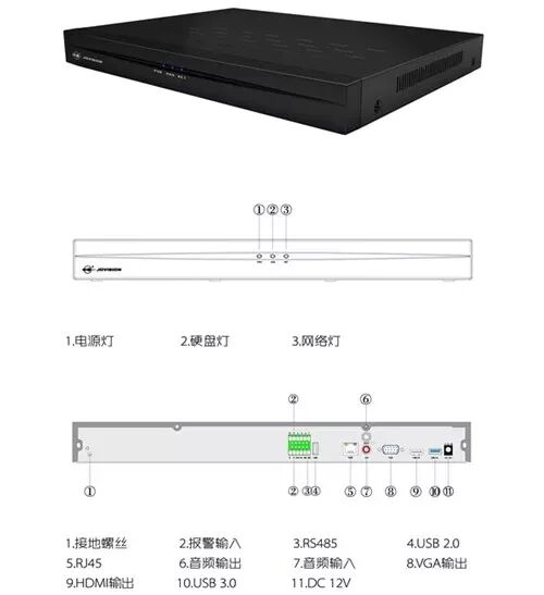 前端摄像机在供电正常运行的状态下,通过网线和交换机将捕捉到的视频信号传到后台的硬盘录像机就行预览和存储。针对监控系统点数的不同具体的连接方式有差异,具体连接图可看下面第三步。