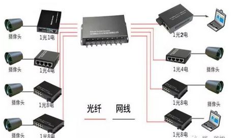 汇聚型光纤收发器在一些小型网络监控项目中应用比较普遍,为多对一的链接方式。